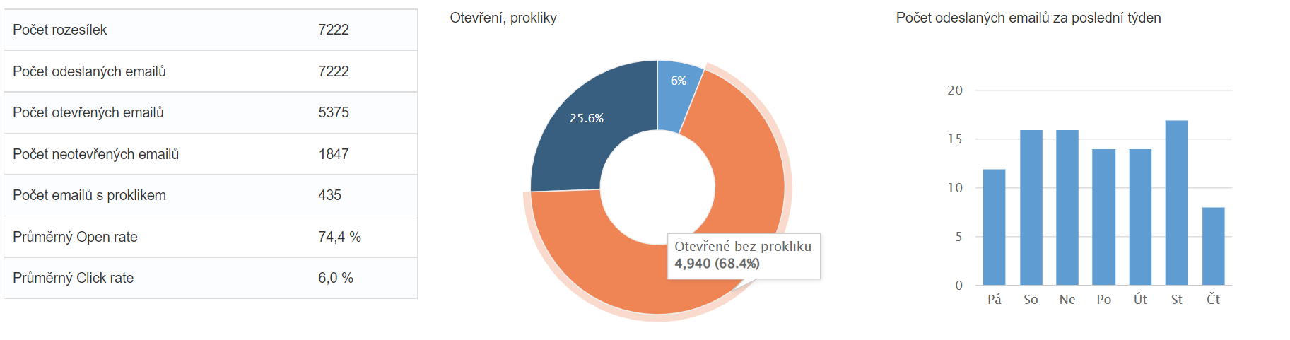 Statistika v transakční kampani zobrazuje e-mailové statistiky pro odeslané emaily v rámci zobrazení kampaně. Transakční kampaně obvykle dosahují výrazně lepších výsledků v Open Rate a Click Rate než marketingová sdělení.